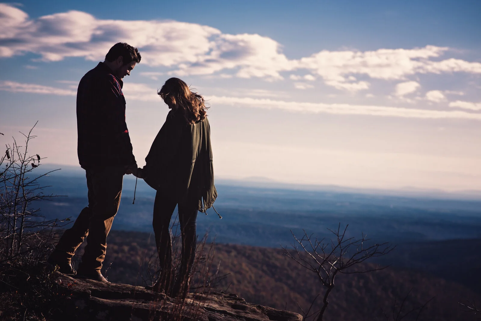 This shoot was an adventure by design. Delyn, Max and I piled into my 4Runner with Justin and Kate behind me and we headed out to the middle of nowhere to shoot on these amazing bluffs. Most of our shoots involve several locations and some travel time, but this entire shoot centered around being at these bluffs just before sunset so the goal was to get there and just hang out. After a funny little GPS problem which left us on a road that looked more like a washed out gully than something our SUVs could make it up we finally found the right road. 30 miles of dirt and dust later we pulled up to where we had to park and took off on the short hike to these rock bluffs. Truth be told I was so excited about the process of shooting out here, and the beautiful couple we had coming along for this that I didn’t take into account just how amazing they are together until that first frame. I realized as we walked down a dirt path that I was about to be on the easiest shoot of my life. Kate is absolutely stunning with a huge smile and a perfectly kind personality. Spending her afternoon with 4 guys didn’t bother her for a minute and she flirted and laughed with Justin the entire time. Justin on the other hand is completely transparent. You know what’s on this guy’s mind the second it happens and to watch him let go of any todo lists, any work, anything in the world other than being present on a long afternoon with Kate was amazing.