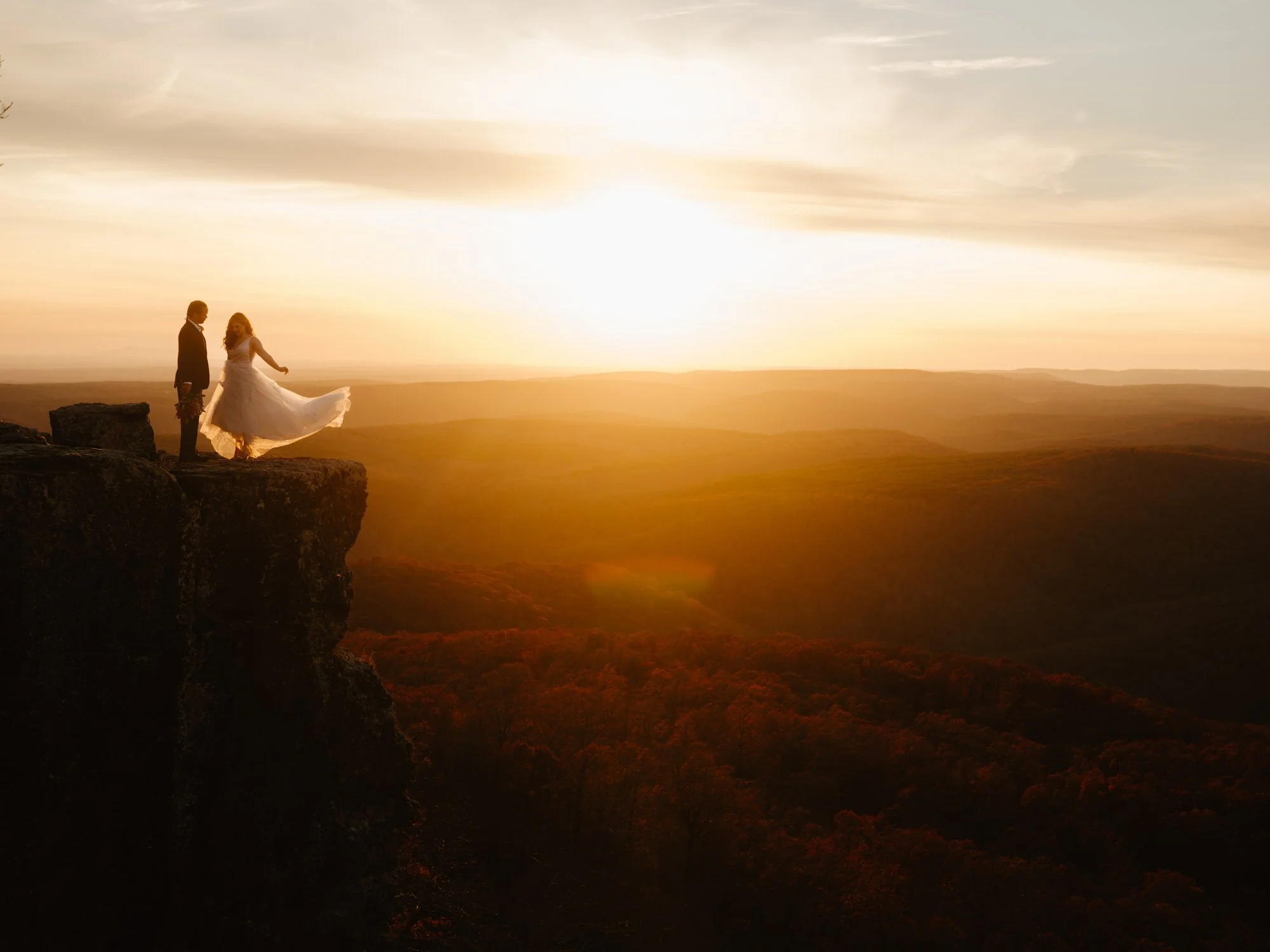 For an elopement that feels like a fairy tale, consider White Rock Mountain. This remote location in the Ozarks offers sweeping views and cozy cabins for a romantic getaway. Whether you're exchanging vows at sunrise or sunset, the stunning backdrop will leave you enchanted. It’s my favorite place to watch a sunset and the location for a few of my very favorite shoots I’ve ever been a part of.